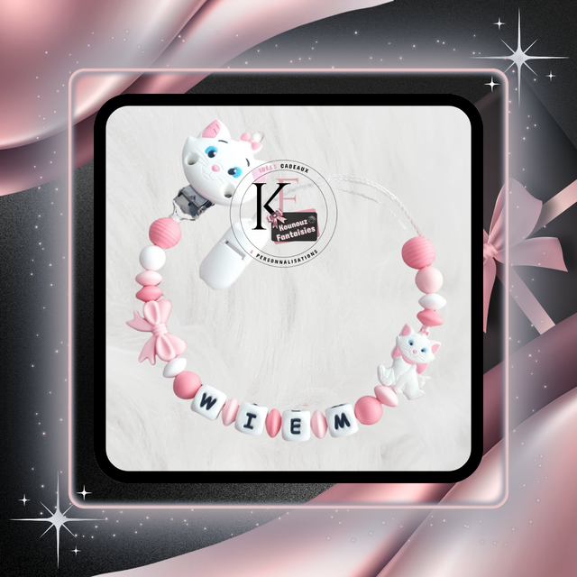 Fini les tétines/sucettes qui tombent et se salissent par terre. Optez pour cette attache personnalisée originale avec des perles et clips en silicone, spécialement conçus pour les bébés et peuvent être mis à la bouche. Ils sont sans produits nocifs et répondent aux normes européennes DIN-EN 71-3 sans BPA.
