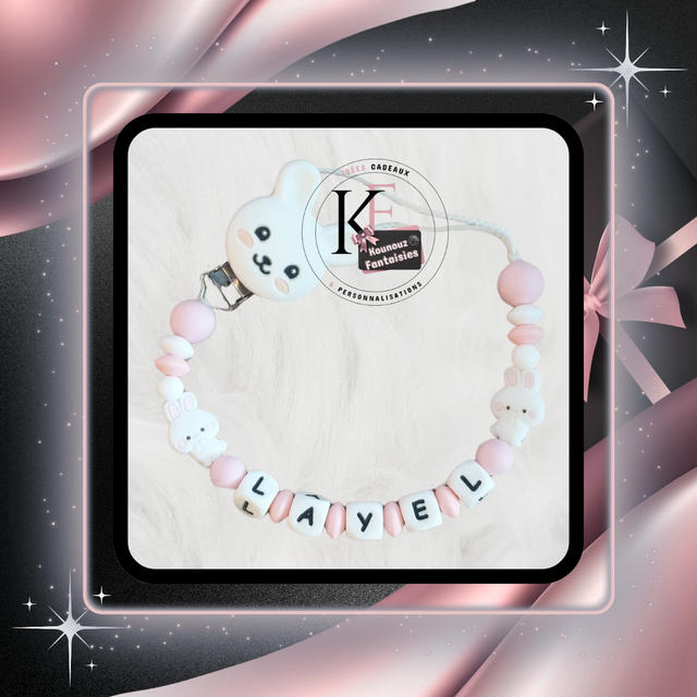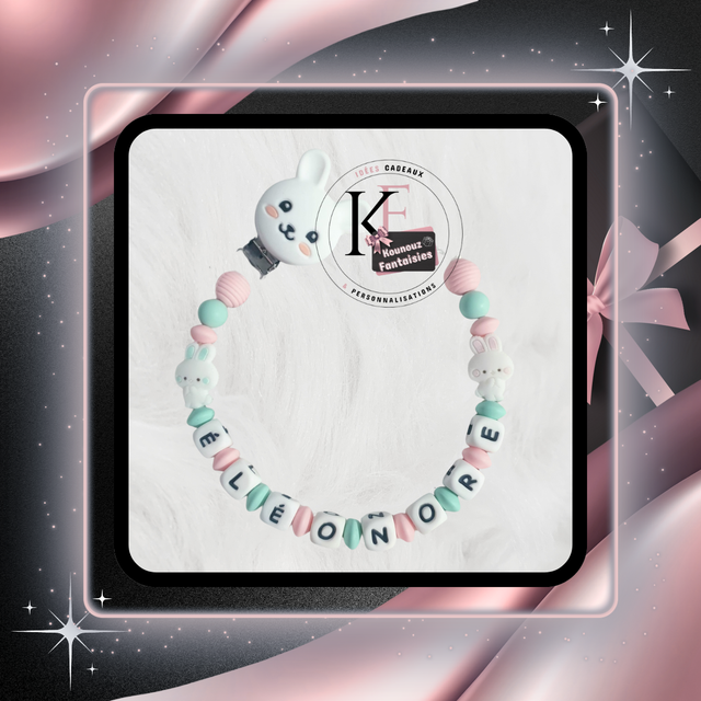 Ce modèle pour filles/garçons, thème lapinou en divers coloris ravira vos petits bouts et petites princesses😊 Pour la personnalisation, indiquer le prénom et toute autre information nécessaire à votre commande dans la partie message au commerçant avant de valider votre commande. En cas d'oubli, contactez moi via le formulaire de contact, par mail : kounouzfantaisies@gmail.com ou sur les réseaux sociaux.