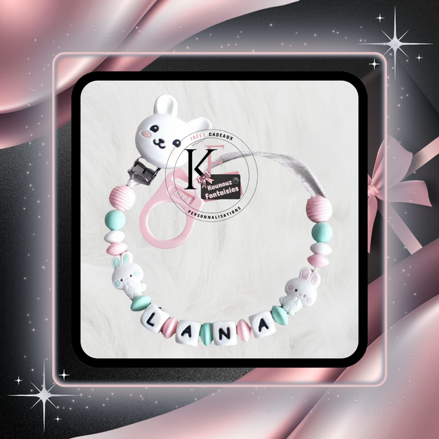 Fini les tétines/sucettes qui tombent et se salissent par terre. Optez pour cette attache personnalisée originale avec des perles et clips en silicone, spécialement conçus pour les bébés et peuvent être mis à la bouche. Ils sont sans produits nocifs et répondent aux normes européennes DIN-EN 71-3 sans BPA.